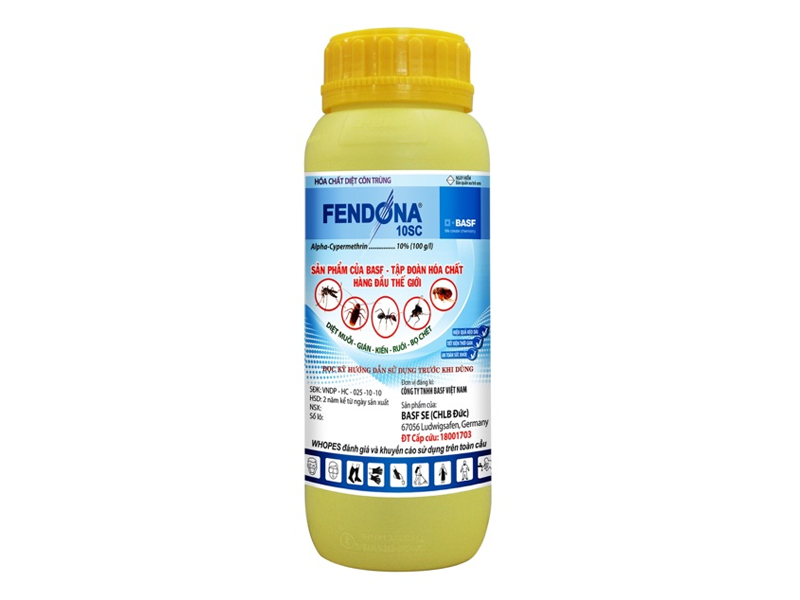 – Fendona 10SC là thuốc diệt côn trùng có tác dụng loại trừ muỗi, ruồi, gián, bọ chét, rầy, rệp,… một cách triệt để và hiệu quả. Fendona 10SC có đặc tính không màu, không mùi, đảm bảo an toàn cho sức khỏe con người và vật nuôi.